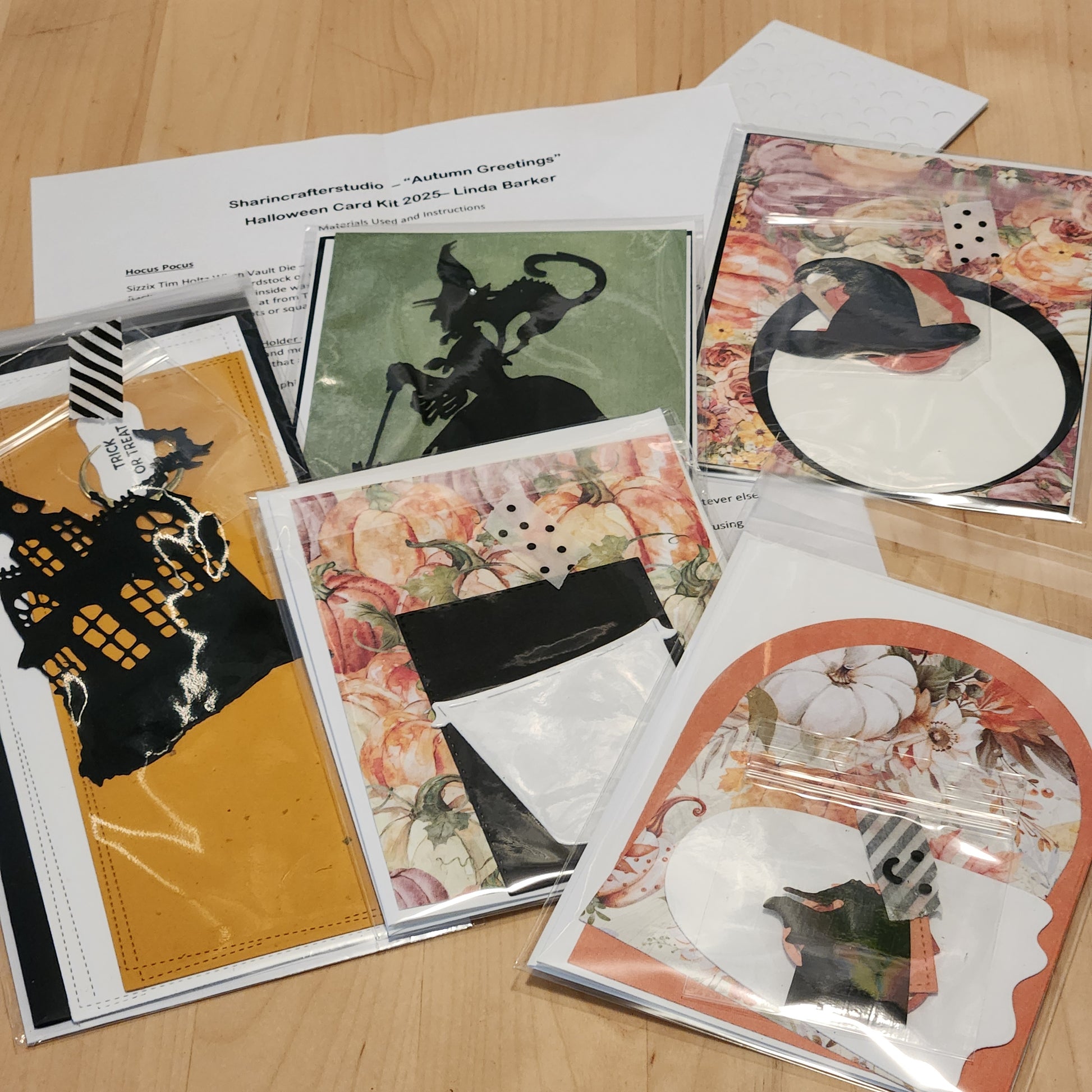 New class kit by Linda Barker! This kit includes supplies to make 5 Halloween/Fall themed cards. The cards include dies cuts from the current Tim Holtz vault collection, some from Memory Box and Poppystamps, as well as Pretty Pink Posh and Spellbinders!
